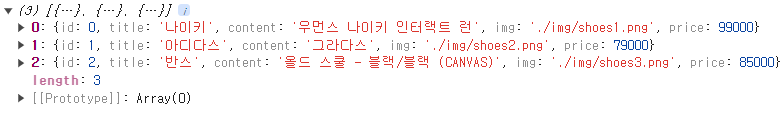 data.js를 import한 후 data값에 대한 log를 찍어본다.