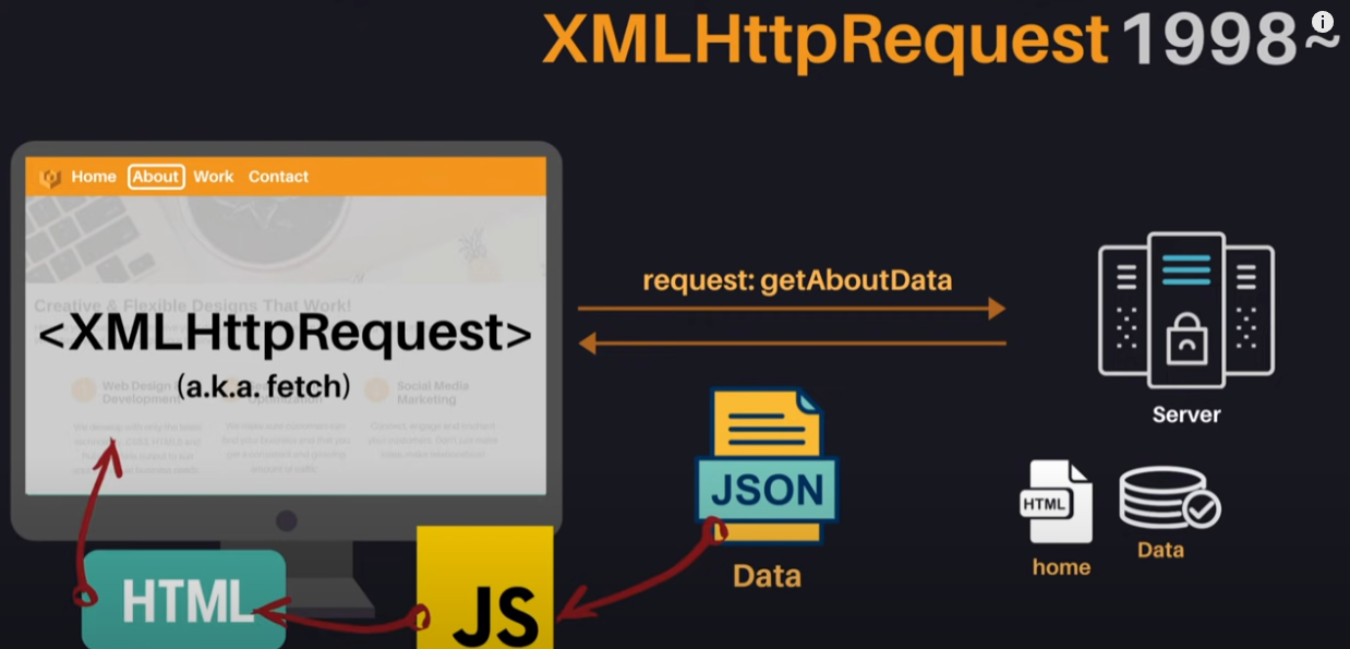 1998년 - XMLHttpRequest API(fetch API의 원조)
