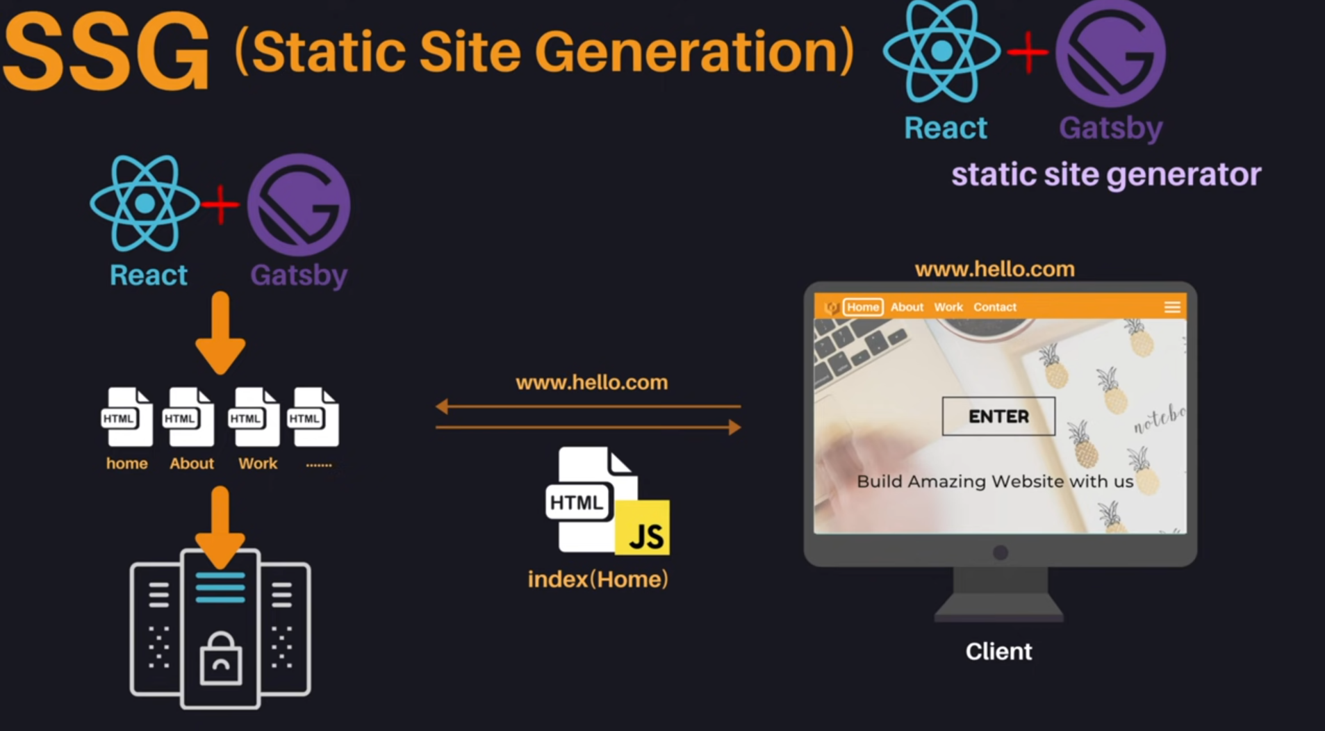 React + Gatsby => React로 만든 웹 어플리케이션을 정적으로 웹페이지를 미리 생성해두어서 서버에 배포해 놓을 수 있음