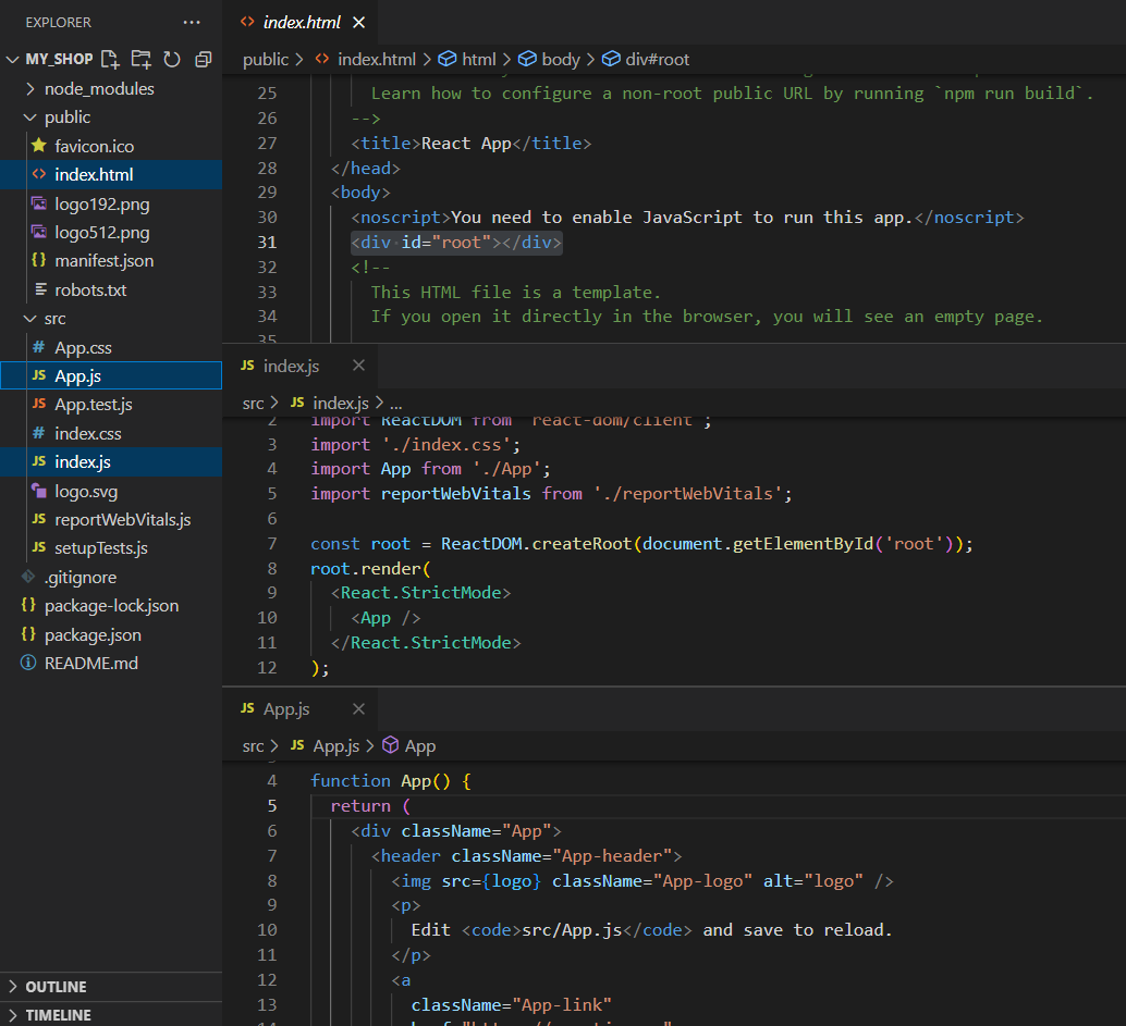 ** React에서의 화면 표출(index.html, index.js, App.js)