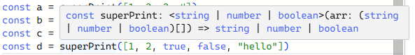 const d = superPrint2([1, 2, true, false, "hello"], [])